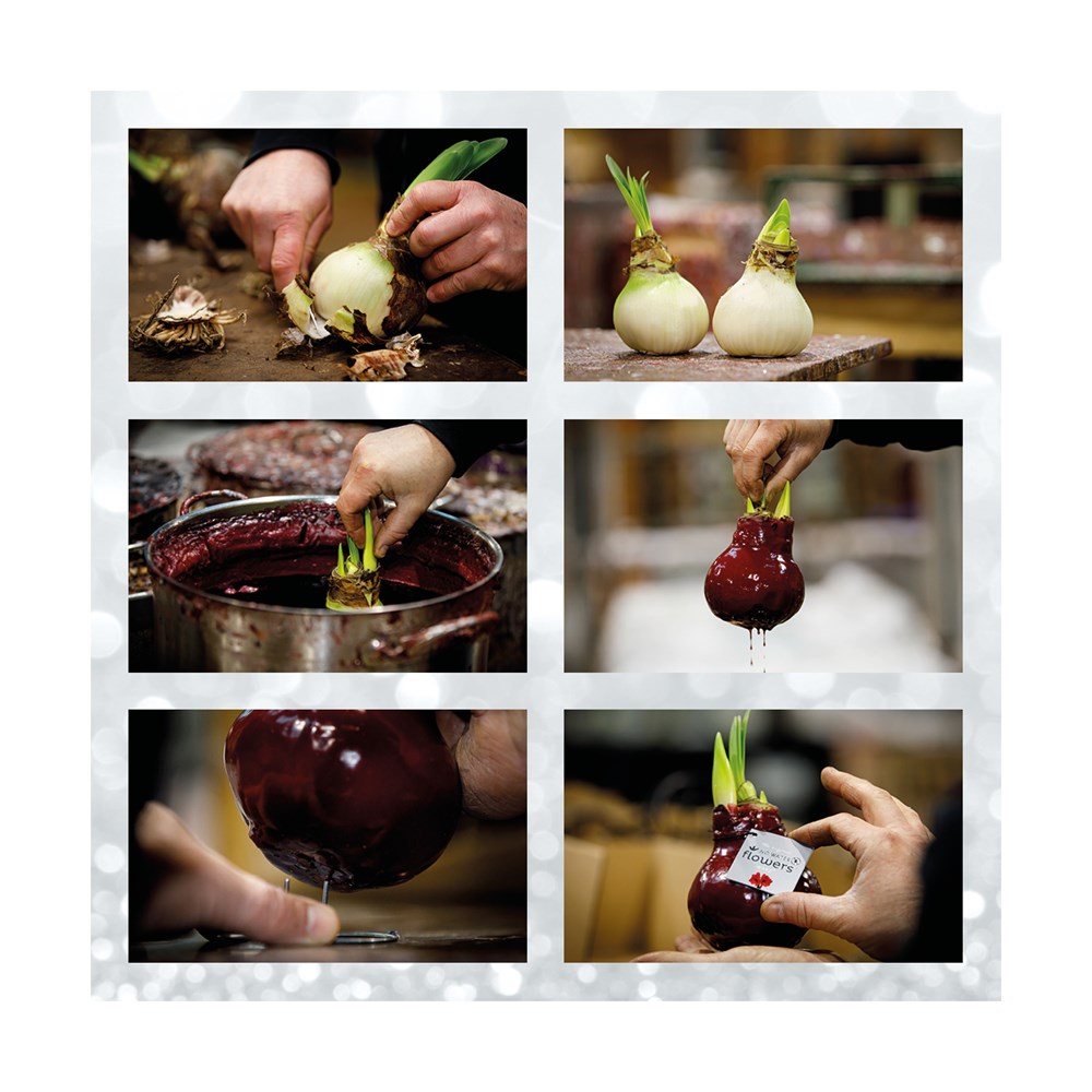 Alle No Water Flowers® zijn voorzien van een metalen steun waardoor de wax amaryllis neergezet kan worden en deze altijd stabiel blijft staan. De Originele No Water Flowers® zijn makkelijk te herkennen aan het label die aan de bol bevestigd is. Deze amaryllisbollen hebben geen verzorging nodig. Zet de wax amaryllis op een lichte plek, maar niet in direct zonlicht en geniet van de prachtige bloemen die zich binnen 3 tot 5 weken ontwikkelen. Bloembollen zijn natuurproducten, elke bol is uniek op zichzelf en heeft een andere vorm.